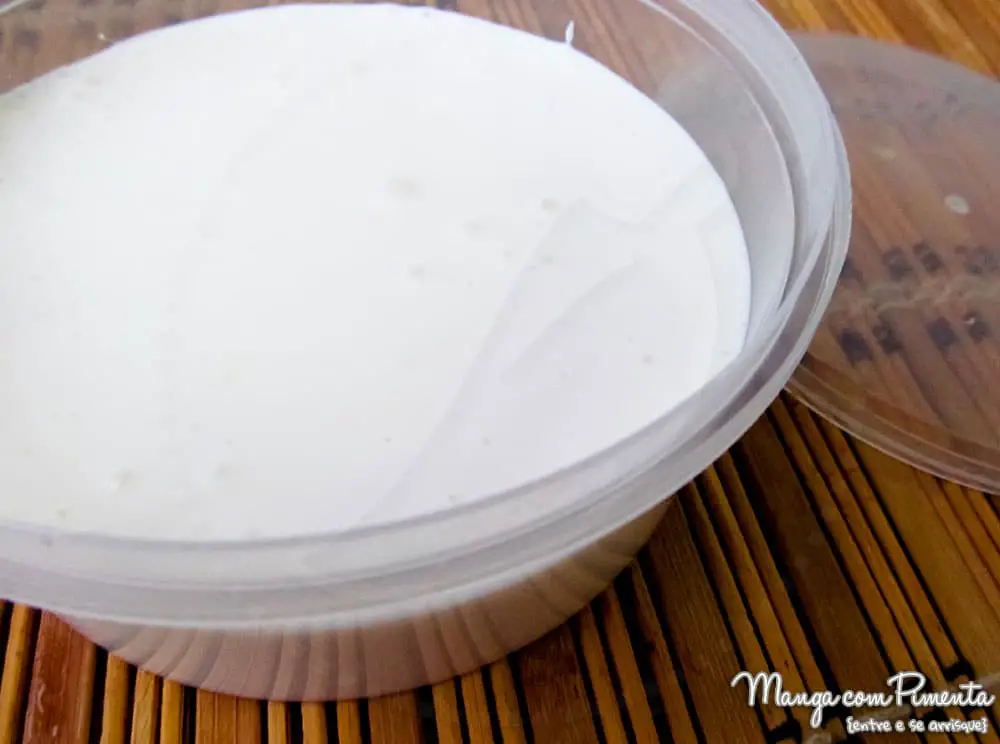 A sua maionese de leite está pronta. Coloque em um pote bem fechado e leve a geladeira.