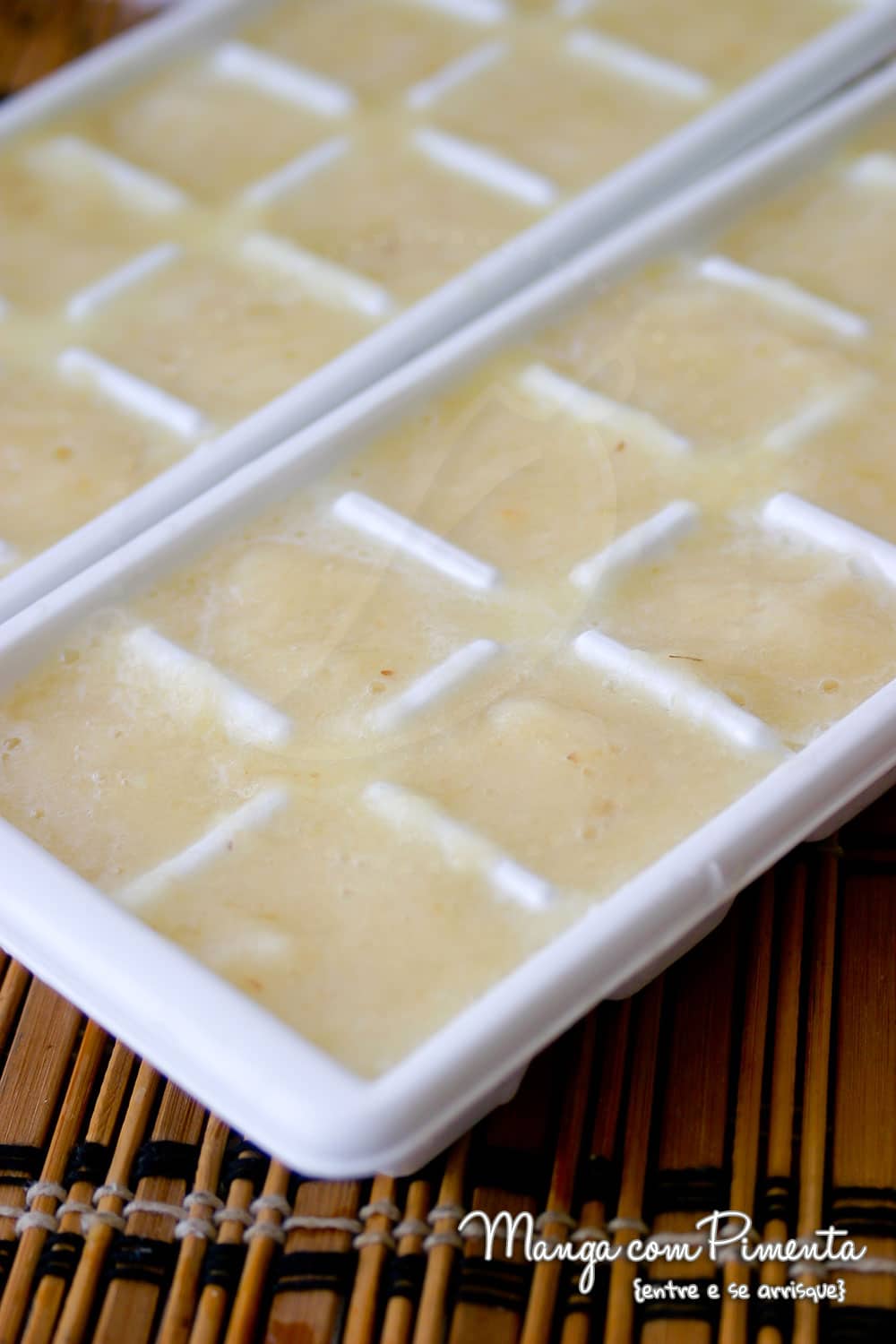 Distribua em forminhas de gelos e leve ao congelador de um dia para o outro, durante doze horas.